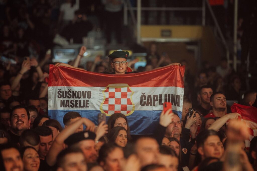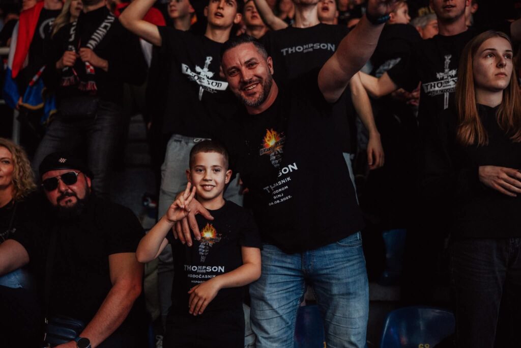 Thompson je publiku pozdravio riječima “Hvaljen Isus i Marija, dobra večer”, zahvalivši svima na dolasku, uz poruku da mu je u Hercegovini uvijek “kao doma”.
