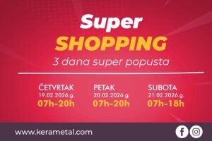 Prodajni centar Kerametal Ljubuški priprema pravi shopping spektakl koji ne smijete propustiti! Od četvrtka do subote, 19. – 21.02.2026., očekuju vas tri dana super popusta na gotovo kompletan asortiman.