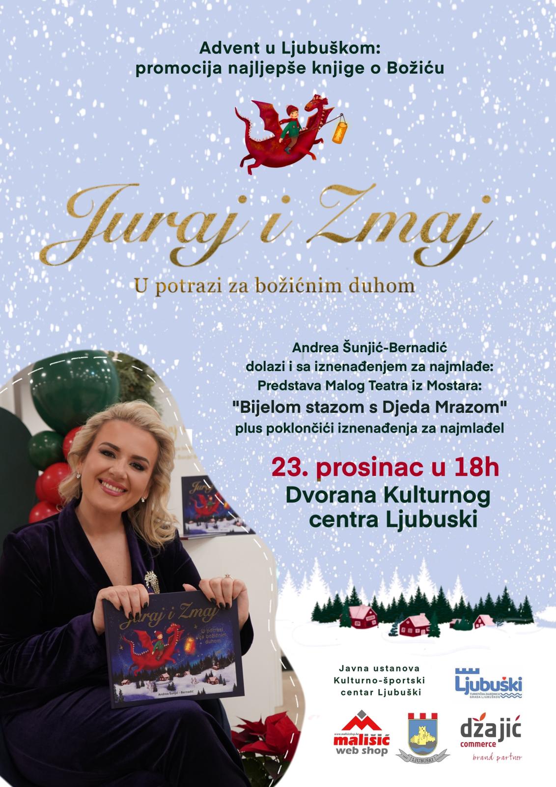 U sklopu Adventa u Ljubuškom, 23. prosinca 2025. godine, s početkom u 18:00 sati, u dvorani Kulturnog centra Ljubuški održat će se predstavljanje dječje knjige „Juraj i Zmaj – U potrazi za božićnim duhom“ autorice Andree Šunjić Bernardić.
